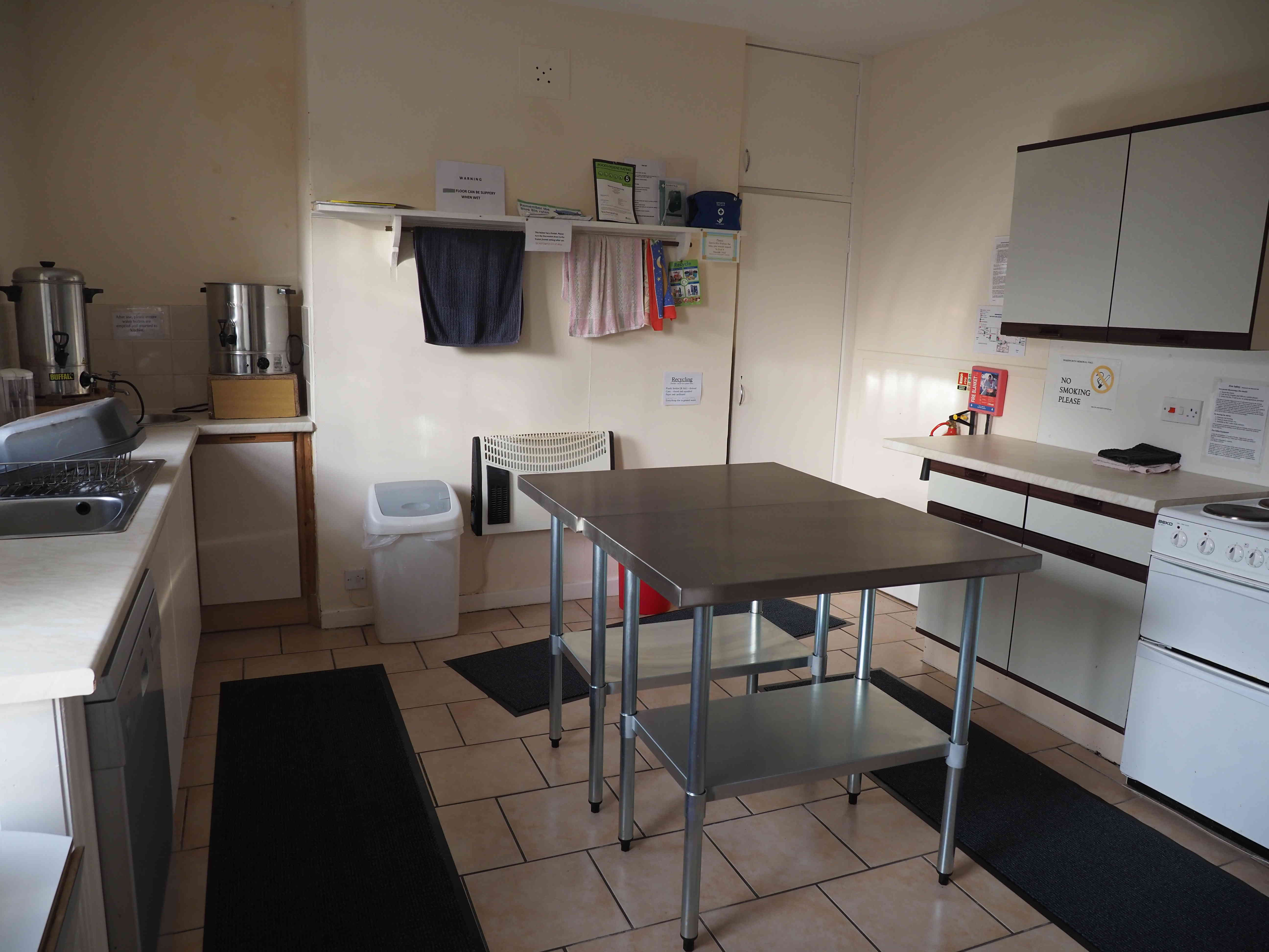This is accessed by a flight of stairs through the Supper Room. It is a non-bookable room. As well as providing a storage area it is suitable as a small study area. It measures approximately 4.2 x 5.1 metres. It has a table, 12 chairs and a conventional gas fire. WiFi is available.The Kitchen